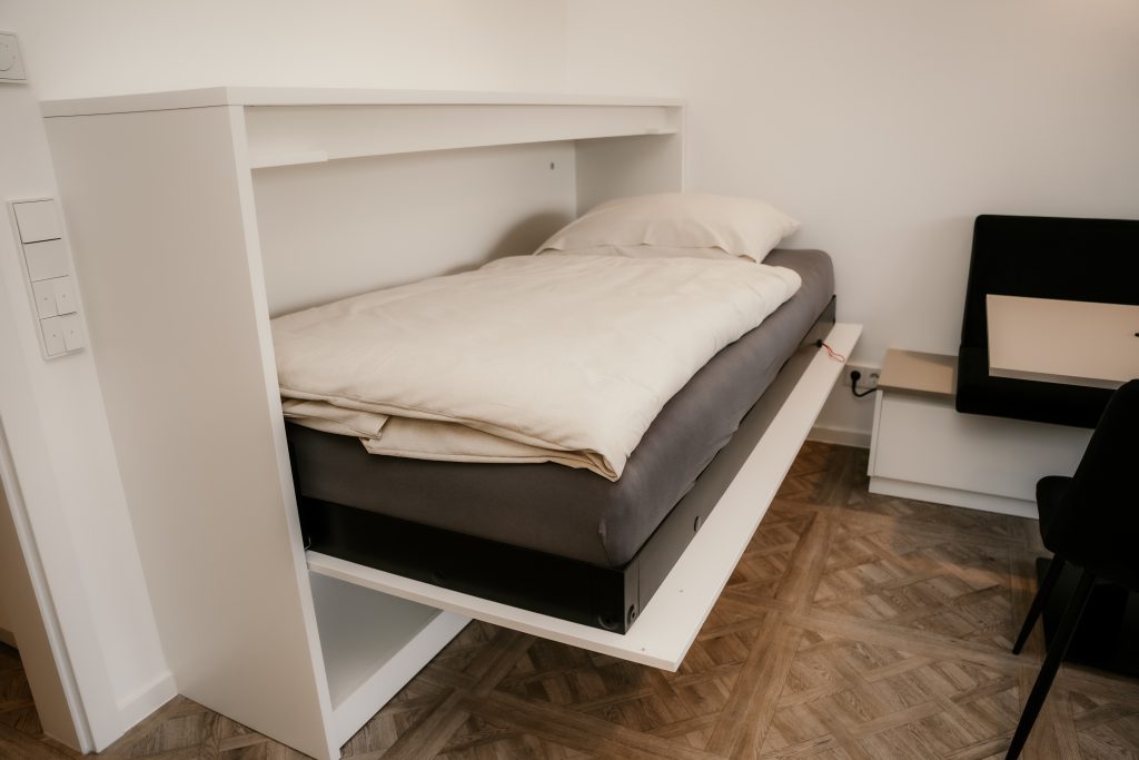 Das separate Schlafzimmer mit Doppelbett sorgt für erholsamen Schlaf, im gemütlichen Wohnzimmer lädt ein Schlafsofa zum Entspannen ein. Die offene Küche ist bestens ausgestattet – mit Spülmaschine, Backofen, Kaffeemaschine und allem, was man für den kleinen Hunger zwischendurch oder ein gemeinsames Abendessen braucht.