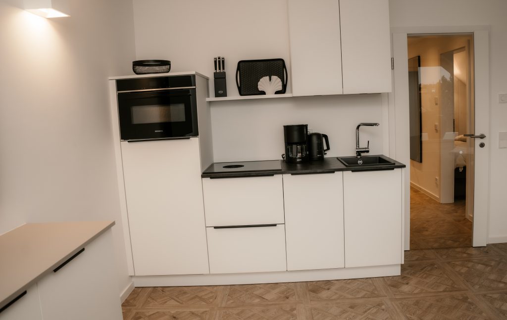• Voll ausgestattete Küche mit Spülmaschine, Backofen & Kaffeemaschine