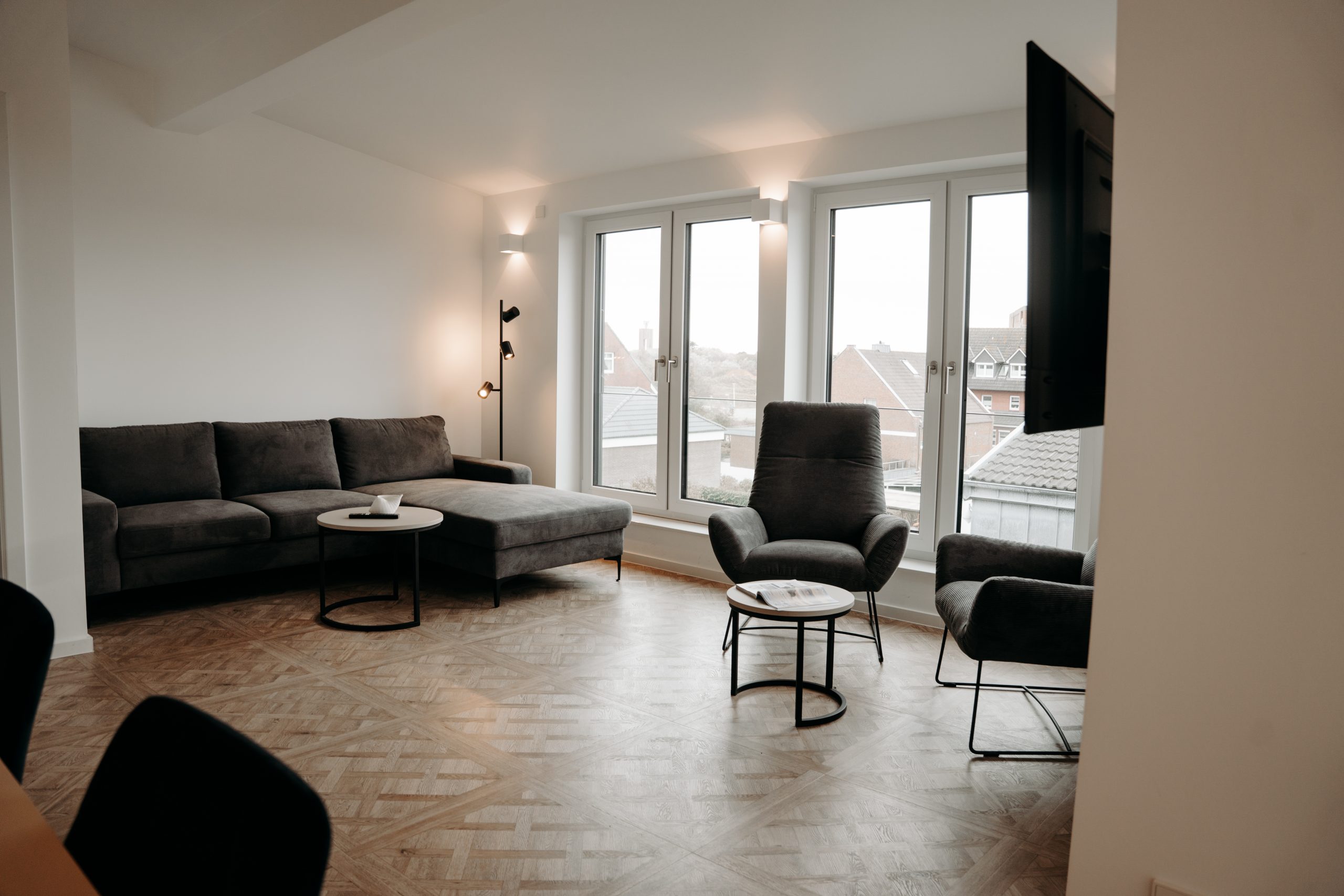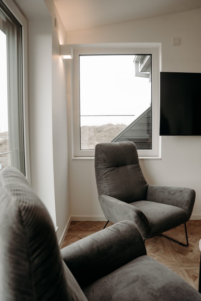 Besonderes Highlight ist der Balkon mit Meerblick – der perfekte Ort für den ersten Kaffee am Morgen oder den Sonnenuntergang über der Nordsee. Und wer sich nach einem aktiven Inseltag entspannen möchte, genießt die private Sauna direkt in der Wohnung.