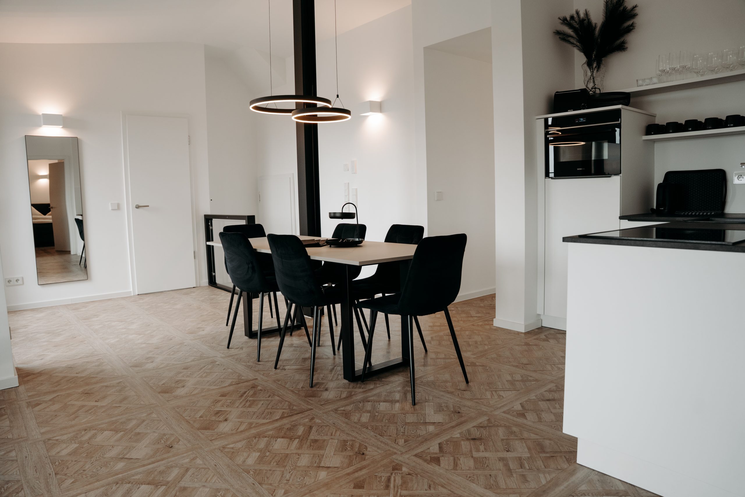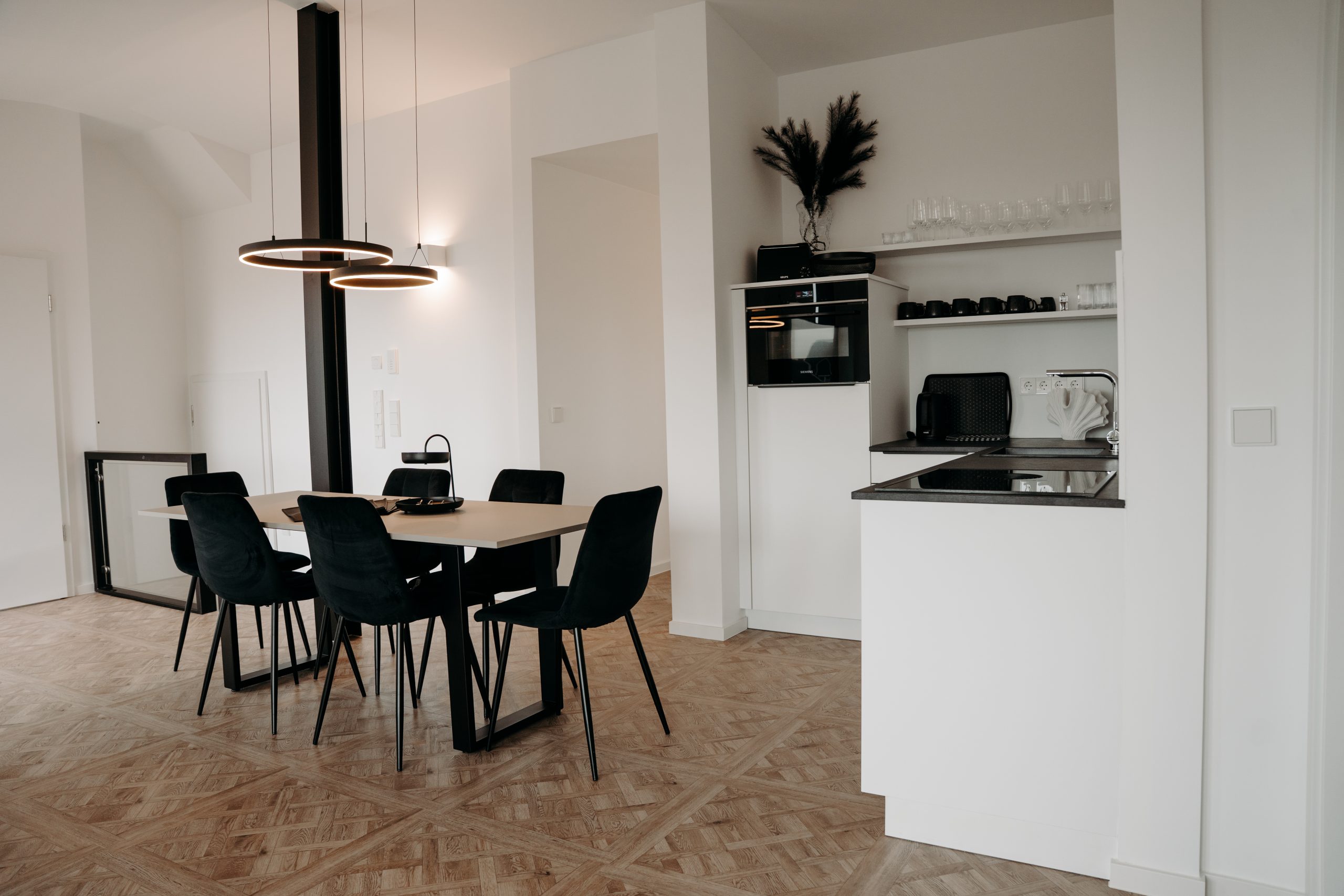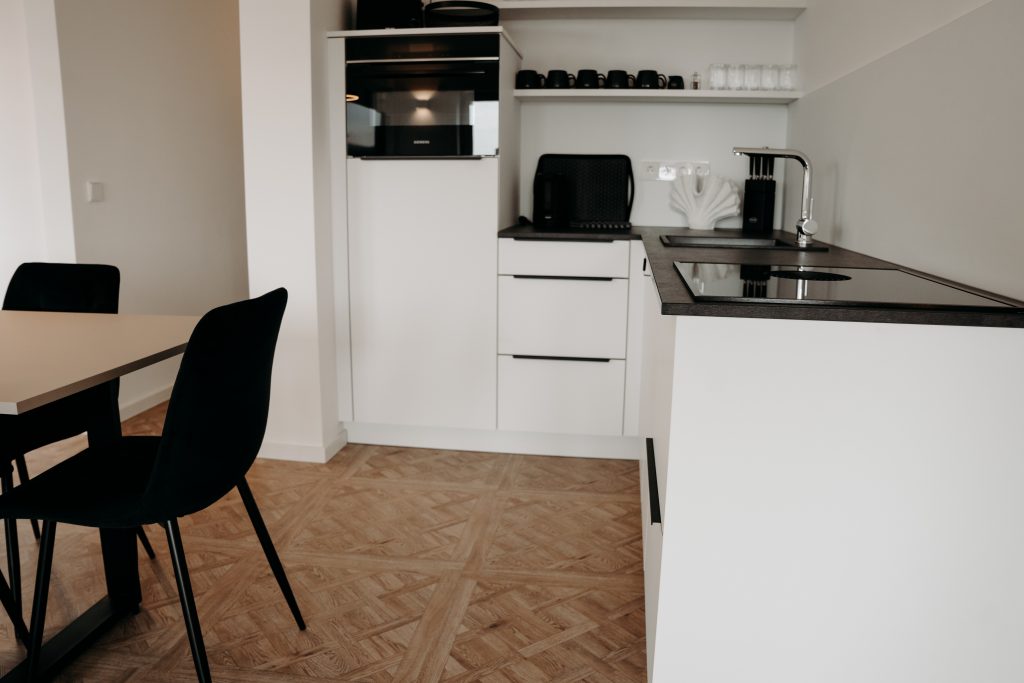 • Voll ausgestattete Küche mit Spülmaschine, Backofen & Kaffeemaschine