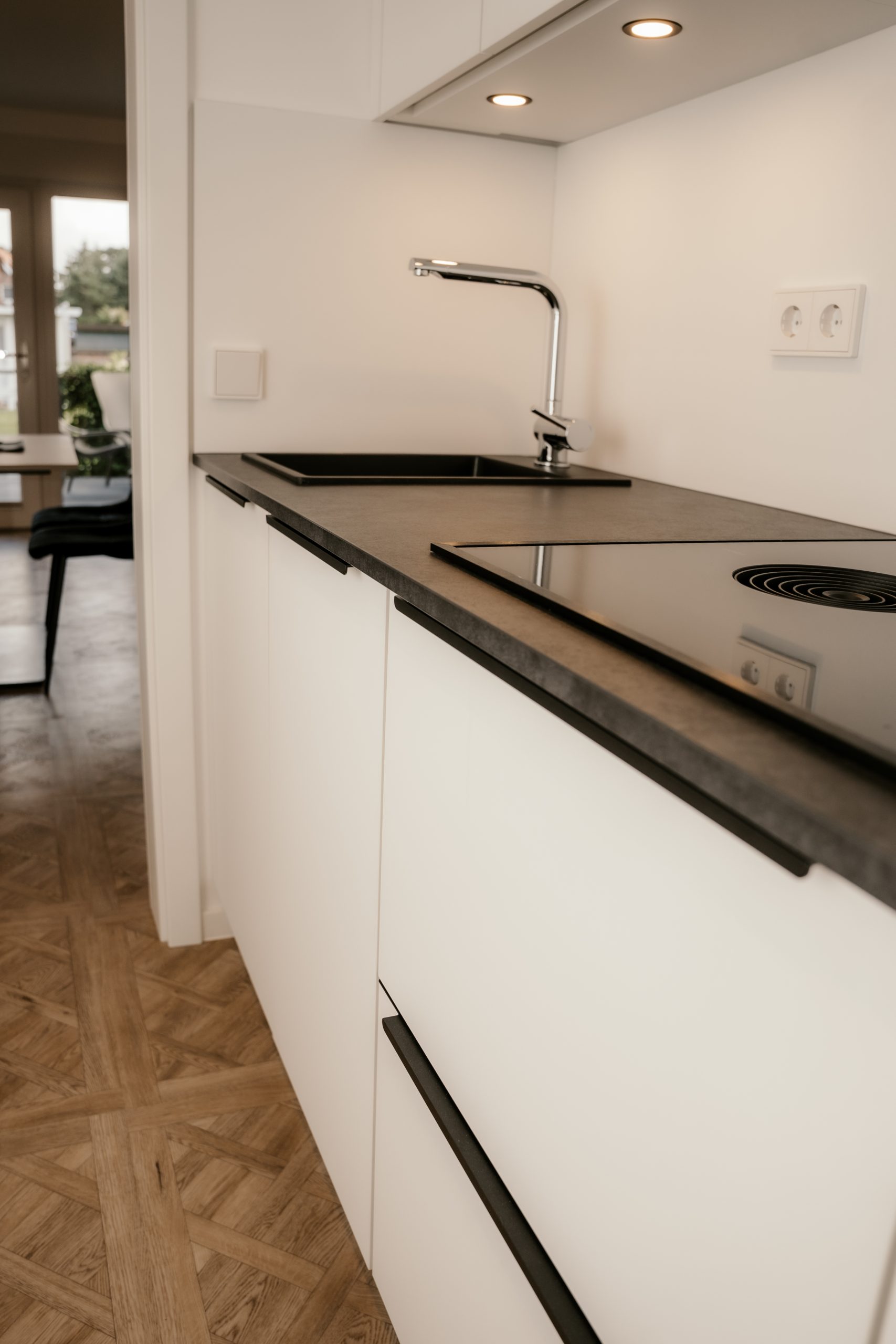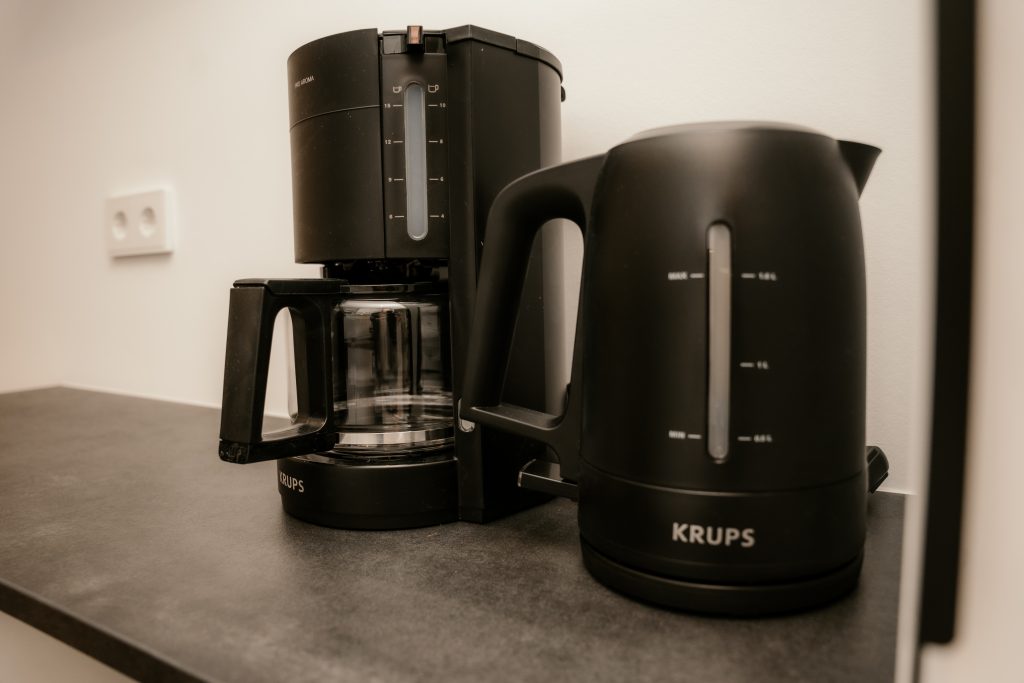 Voll ausgestattete Küche mit Spülmaschine, Backofen & Kaffeemaschine