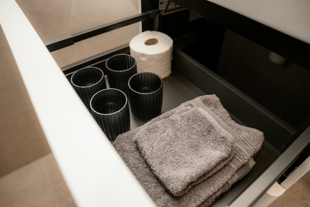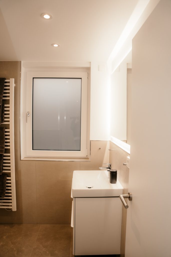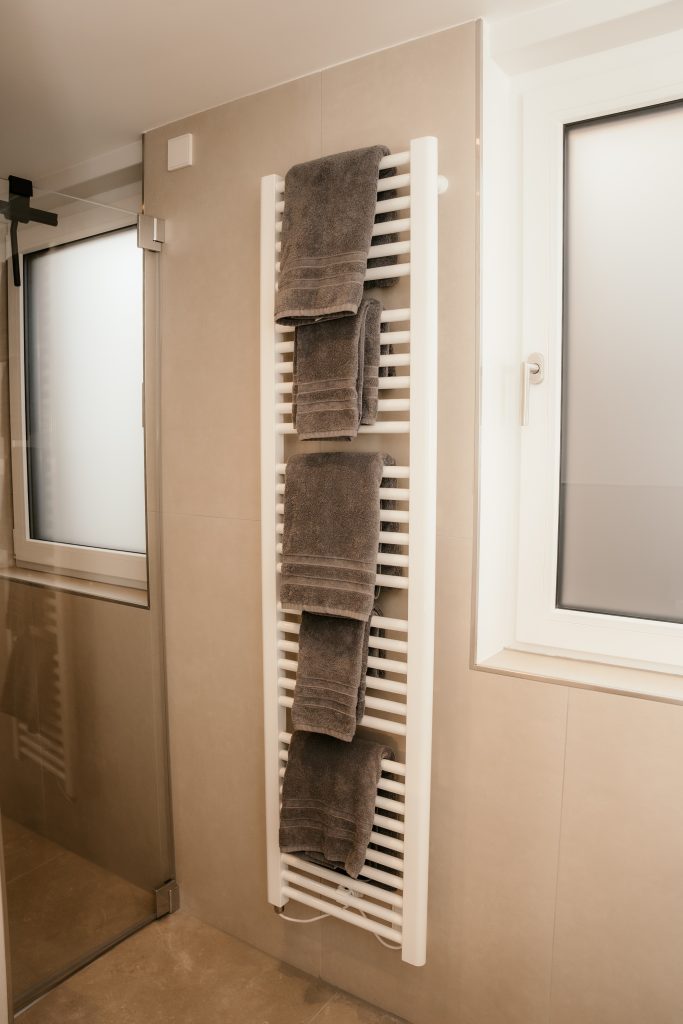 Die Küche ist voll ausgestattet – mit Spülmaschine, Backofen, Kaffeemaschine und allem, was man für den kleinen oder großen Appetit braucht. Das moderne Bad verfügt über eine ebenerdige Dusche, Handtücher und Föhn sind inklusive.